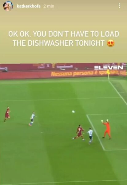 L’attaccante è stato l’autore dei due gol del Napoli contro la Roma e la moglie, in una storia su Instagram, si complimenta lui ironizzando in maniera simpatica con un “Ok, stasera non dovrai fare la lavastoviglie”