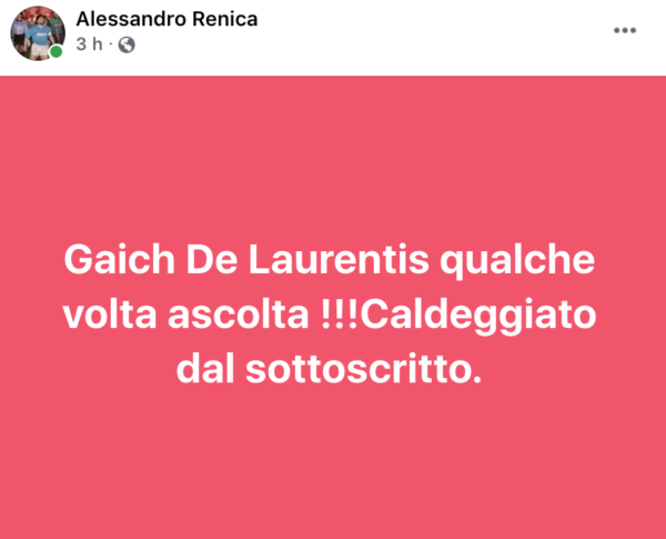 L’ex calciatore del Napoli, Alessandro Renica, ha rivelato, con un messaggio sul suo profilo Facebook, di aver consigliato calciatori a De Laurentiis.