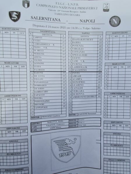 SALERNITANA NAPOLI PRIMAVERA FORMAZIONI UFFICIALI