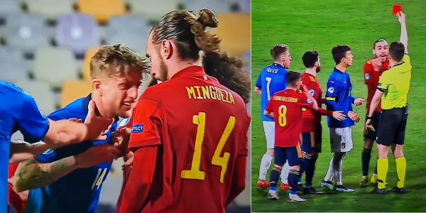 È da poco terminata la gara tra Italia e Spagna valevole per la fase a gironi dell’Europeo Under 21. Il match è terminato 0-0, ma nei minuti finali la gara si è accesa a causa di ben 3 espulsioni in pochi minuti. L’arbitro ha infatti sventolato il cartellino rosso agli azzurrini Scamacca e Rovella, oltre che allo spagnolo Mingueza.