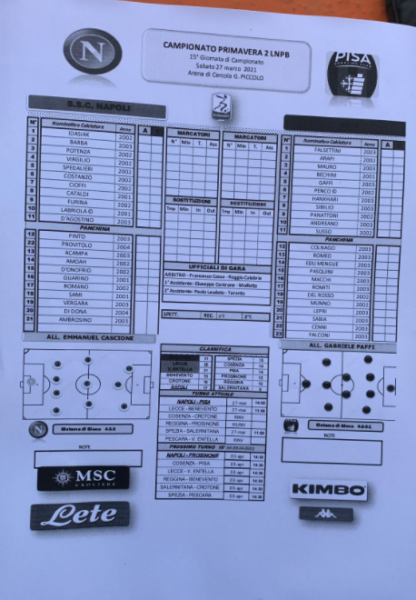 NAPOLI PISA PRIMAVERA, LE FORMAZIONI UFFICIALI: