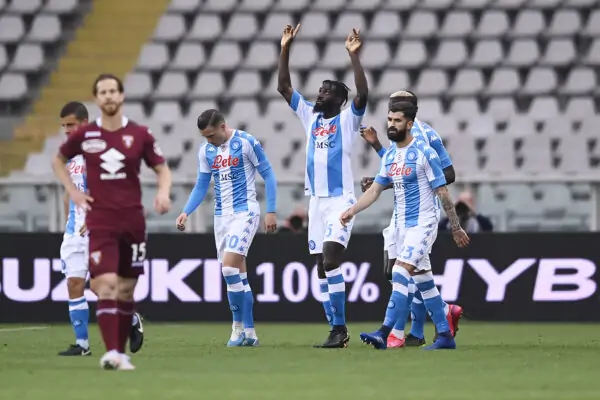 Photo LaPresse - Fabio Ferrari April 26, 2021 Turin, Italy soccer EXCLUSIVE TORINO FC Torino Fc vs SSC Napoli - Italian Football Championship League A TIM 2020/2021 - "Olimpico Grande Torino" stadium. In the pic: Tiemoue Bakayoko SSC Napoli celebrates after scoaring goal 0-1 PUBLICATIONxNOTxINxITAxFRAxCHN Copyright: xFabioxFerrari/LaPressex