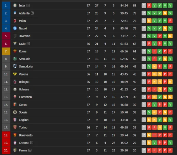 A questo punto agli azzurri potrebbe bastare anche un pareggio contro il Verona all’ultima giornata in caso di sconfitta del Milan contro l’Atalanta, al di là del risultato della Juve.