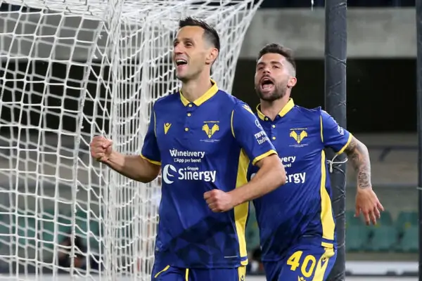 Photo Paola Garbuio/LaPresse May 17 , 2021 Verona, Italy soccer Hellas Verona vs Bologna -Italian Football Championship League A TIM 2020/2021 - Bentegodi stadium. In the pic: Nikola Kalinic s celebration goal 2-1 PUBLICATIONxNOTxINxITAxFRAxCHN Copyright: xPaolaxGarbuio/LaPressex