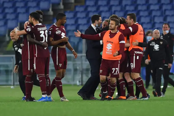 Soccer, Serie A League Lazio vs Torino Torino players celebrate the salvation and remain in the series A during the Serie A League football match between Lazio vs Torino at Olimpico stadium in Rome, Italy, May 18, 2021. Imago-Images/Emmefoto Copyright: xImago-Images/Emmefotox