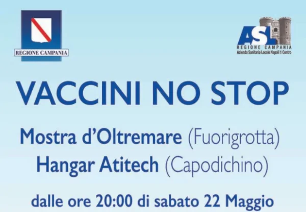 Infatti, appena terminate le vaccinazioni della giornata di sabato 22, prenderà il via una no stop che consentirà di vaccinarsi durante la notte a quanti avranno aderito (collegandosi alla piattaforma sarà possibile scegliere il centro vaccinale e la fascia oraria). I centri aperti per la no stop saranno Hangar Atitech (Capodichino) e Mostra d’Oltremare (Fuorigrotta).