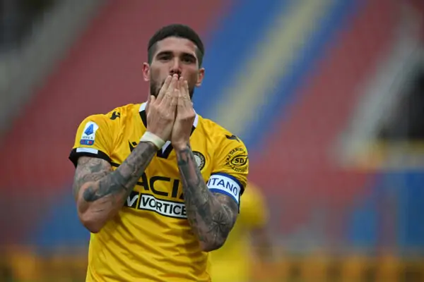 Photo Francesco Mazzitello/LaPresse April 17, 2021 Crotone, Italy calcio Crotone vs Udinese - Italian Football Championship League A TIM 2020/2021 - Ezio Scida StadiumIn the pic: Rodrigo De Paul celebrates after gaol 1-2 PUBLICATIONxNOTxINxITAxFRAxCHN Copyright: xFrancescoxMazzitello/LaPressex