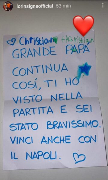 “Grande papà continua così, ti ho visto nella partita e sei stato bravissimo. Vinci anche con il Napoli“.