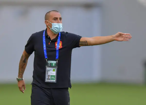 201123 -- DOHA, Nov. 23, 2020 -- Guangzhou Evergrande s head coach Fabio Cannavaro gestures during the group G match between Guangzhou Evergrande of China and Suwon Samsung Bluewings of South Korea at the AFC Champions League 2020 in Doha, capital of Qatar, Nov. 22, 2020. Photo by /Xinhua SPQATAR-DOHA-FOOTBALL-AFC CHAMPIONS LEAGUE-GUANGZHOU EVERGRANDE VS SUWON SAMSUNG BLUEWINGS Nikku PUBLICATIONxNOTxINxCHN