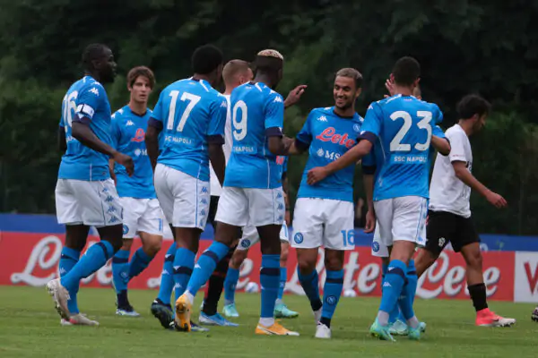 Italy: Preseason 2021-22 SSC Napoli friendly match SSC Napoli vs Football Club Pro Vercelli 1892 SSC Napoli s Nigerian striker Victor Osimhen celebrates after scoring a goal during the pre-season friendly between ssc napoli vs Football Club Pro Vercelli 1892, on the tenth day of ssc napoli s pre-season training camp in Dimaro Folgarida ABPH4672 Copyright: xAntonioxBalascox