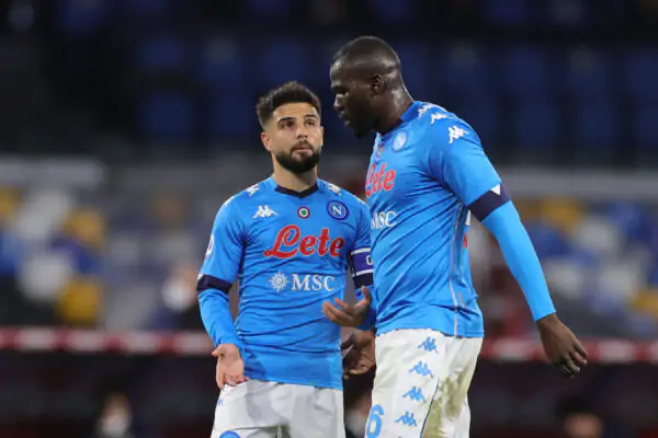 Lorenzo Insigne of SSC Napoli and Kalidou Koulibaly during the Serie A football match between SSC Napoli and Parma Calcio 1913 at Diego Armando Maradona stadium in Napoli Italy, January 31, 2021. Photo Cesare Purini / Insidefoto CesarexPurini