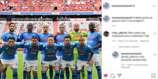 Il difensore greco ha festeggiato la prestazione della squadra sul proprio profilo Instagram ed un tifoso lo ha incitato: “Piano piano stai imparando pure a impostare”.