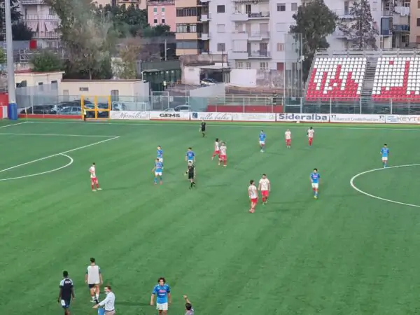 74′ – Napoli molto aggressivo, i ragazzi di Frustalupi (quasi tutti classe ’04) provano a sopperire con l’agonismo a l’evidenza differenza fisica dei calciatori professionisti della Turris.