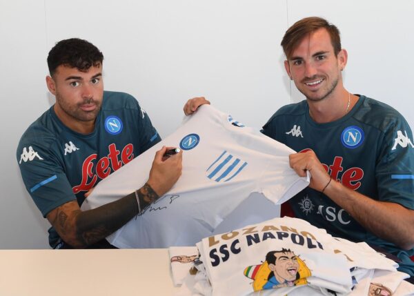 Fabian Ruiz, Rrahmani, Petagna e Zielinski questa mattina hanno firmato magliette e palloni griffati SSC Napoli.