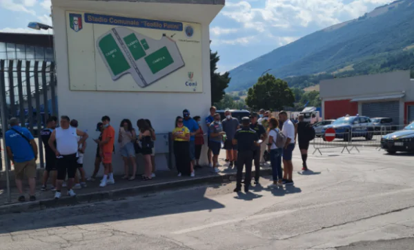 Il match è previsto per le ore 17.30, ma a circa 2 ore dall’inizio del match ci sono già tanti tifosi all’esterno dello stadio Teofilo Patini in attesa dell’apertura dei cancelli per entrare allo stadio.
