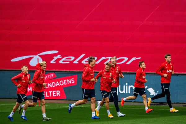 201006 Birger Meling, Morten Thorsby, Sander Berge, Martin odegaard, Erling Braut Haaland, Jonas Svensson and Alexander Sorloth of the Norwegian national football team during a training session on October 6, 2020 in Oslo. Photo: Vegard Wivestad Grott / BILDBYRAN / kod VG / VG0047 bbeng fotball football fotboll UEFA EURO, EM, Europameisterschaft,Fussball 2020 em-kvalifisering em-kvalik playoff norge norway trening träning training *** 201006 Birger Meling, Morten Thorsby, Sander Berge, Martin odegaard, Erling Braut Haaland, Jonas Svensson and Alexander Sorloth of the Norwegian national football team during a training session on October 6, 2020 in Oslo Photo Vegard Wivestad Grott BILDBYRAN kod VG VG0047 bbeng fotball football football uefa euro 2020 em qualification em qualifier playoff norway norway training training training, PUBLICATIONxNOTxINxSWExNORxAUT Copyright: VEGARDxWIVESTADxGRoTT BB201006VG006