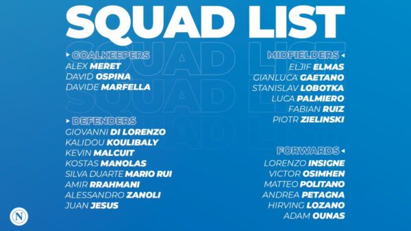 LA LISTA DEI CONVOCATI DEL NAPOLI