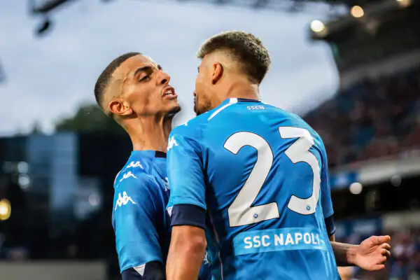 August 4, 2021, Krakow, Poland: Karim Zedadka L and Zinedine Machach R of SSC Napoli celebrate a goal during the Pre-Season Friendly match between Wisla Krakow and SSC Napoli at City Stadium in Krakow. Krakow Poland - ZUMAs197 20210804_zab_s197_098 Copyright: xMikolajxBarbanellx