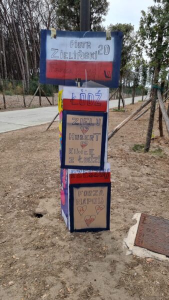 Un tifoso polacco ha voluto manifestare tutto il proprio appoggio al Napoli in vista della sfida di Serie A di domani contro la Juventus all’esterno dell’SSC Napoli Konami Training Center di Castel Volturno.