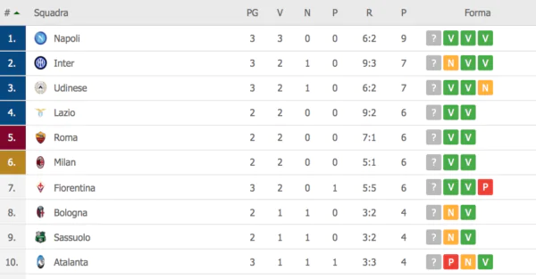In attesa dei match di Milan-Lazio e Roma-Sassuolo, il Napoli di mister Spalletti prende il comando della classifica.