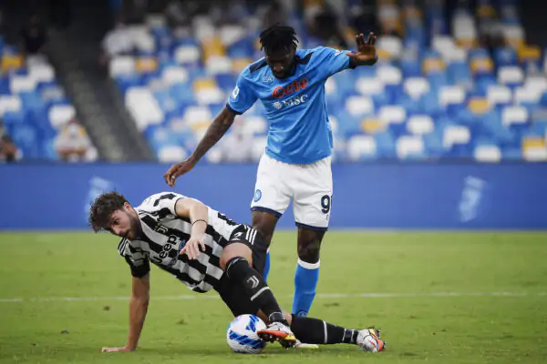 Manuel Locatelli of Juventus FC and Andre Zambo Anguissa of SSC Napoli during the Serie A football match between SSC Napoli and Juventus FC at Diego Armando Maradona stadium in Napoli Italy, September 11th, 2021. Photo Andrea Staccioli / Insidefoto andreaxstaccioli