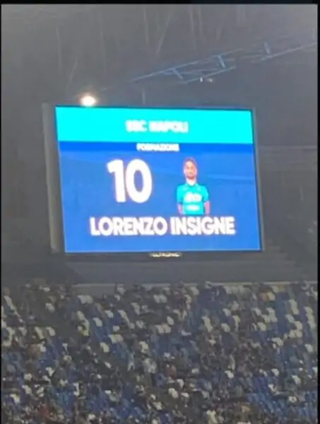 Stando a quanto riferito da Dazn, accanto al nome di Insigne è parso il numero 10, un numero che sognano i bambini napoletani e che è stato precedentemente indossato da Diego Armando Maradona, anch’esso menzionato tramite delle foto sui maxischermi prima dell’inizio di Napoli-Cagliari.