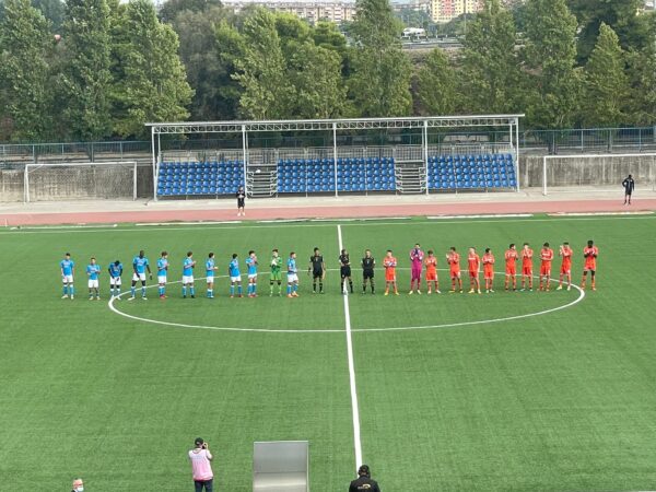 3′ – GOOOOOOOOOOL DEL NAPOLI! MARRANZINO! Napoli subito in vantaggio: apertura in area per Marranzino che dall’interno dell’area si porta la palla sul sinistro e calcia forte sul primo palO. Imprendibile per Lucatelli. 1-0!