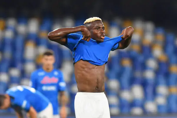Napoli s forward Victor Osimhen reacts during SSC Napoli vs Cagliari Calcio, Italian football Serie A match in Naples, Italy, September 26 2021 PUBLICATIONxINxGERxSUIxAUTxONLY Copyright: xCarmeloxImbesix/xIPAx/xx 0