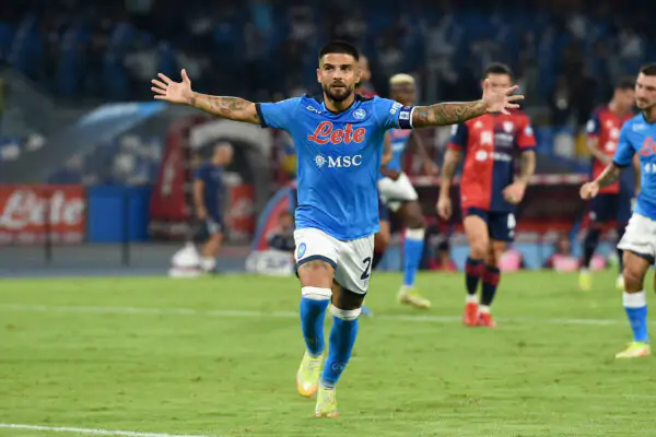SSC Napoli v Cagliari Calcio - Serie A Lorenzo Insigne of SSC Napoli celebrates after scoring during the Serie A match between SSC Napoli and Cagliari Calcio at Stadio Diego Armando Maradona Naples Italy on 26 September 2021. Naples Naples Italy romano-sscnapol210926_npI2b PUBLICATIONxNOTxINxFRA Copyright: xFrancoxRomanox
