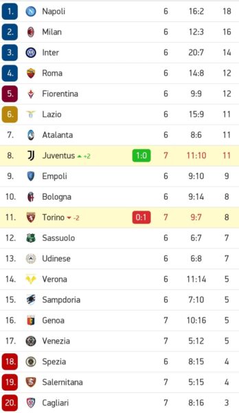 Ora la Juventus sale a 11 punti, staccando il Torino e raggiungendo l’ottavo posto in classifica in attesa delle restanti gare. Il gap con il Napoli capolista si riduce quindi a sette punti.