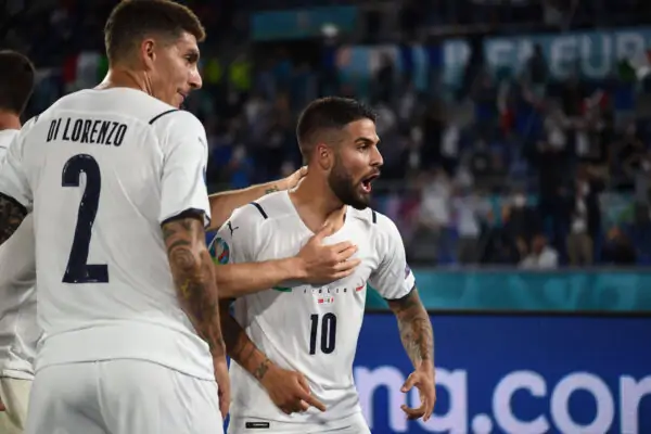 Lorenzo Insigne ItalyGiovanni Di Lorenzo Italy celebrates after scoring his team s third goal during the Uefa European Championship, EM, Europameisterschaft 2020 match between Turkey 0-3 Italy at Olimpic Stadium on June 11, 2021 in Roma, Italy. Noxthirdxpartyxsales PUBLICATIONxNOTxINxJPN 162324236