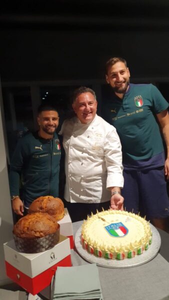 Un’incursione tanto dolce e inaspettata nel ritiro dell’Italia. A far visita alla Nazionale è stato il Maestro Pasticciere Sal De Riso, Presidente AMPI (Associazione Maestri Pasticcieri Italiani), alla vigilia della semifinale di Nations League contro la Spagna.