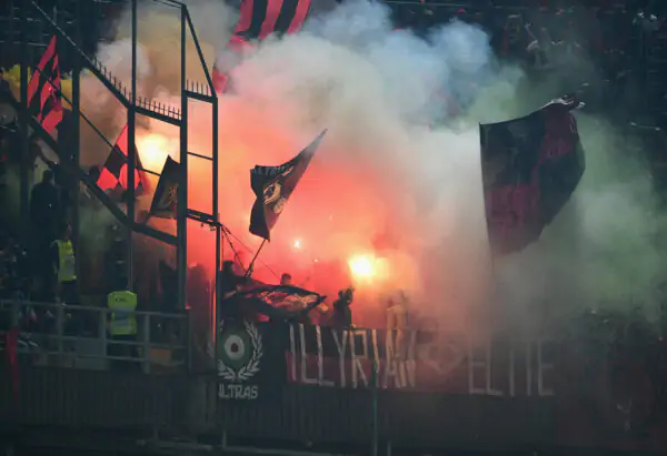 PALERMO, ITALY - MARCH 24: Albania's supporters throw smoke bombs and flares during the FIFA 2018 World Cup Qualifier between Italy and Albania at Stadio Renzo Barbera on March 24, 2017 in Palermo, . (Photo by Claudio Villa/Getty Images)