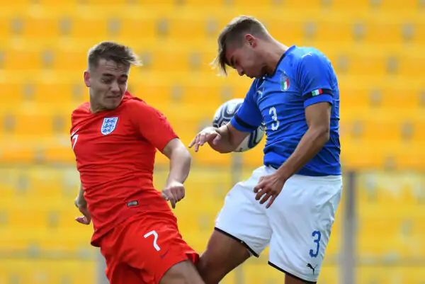 PARMA, ITALY - OCTOBER 10: Luke Bolton of England U20 competes for the ball with Alessandro Tripaldelli of Italy U20 during the 8 Nations Tournament match between Italy U20 and England U20 at Stadio Ennio Tardini on October 10, 2019 in Parma, Italy. (Photo by Alessandro Sabattini/Getty Images)