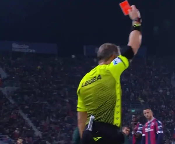 È stato espulso dall’arbitro dopo un controllo al VAR Roberto Soriano a causa di un brutto intervento ai danni di Ballo Tourè.