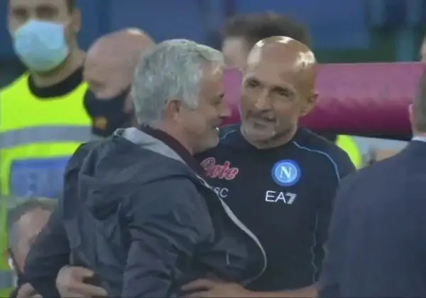 Prima dell’inizio della gara i due hanno scambiato un lungo abbraccio ripreso da tutte le telecamere. Ma il vero siparietto si è svolto lontano dai riflettori. Secondo quanto riportato dall’edizione odierna della Gazzetta dello Sport, Mourinho e Spalletti si sono incrociati e abbracciati con sincero trasporto alle spalle della sala stampa. Spalletti con un “Hai capito quello che devi fare…” ha voluto dare un consiglio a Mou sull’ambiente romano. Il portoghese, prima di salutare Spalletti gli ha chiesto: “Perché ha dato rosso anche a te?”. La risposta del tecnico azzurro è stata la stessa data ai microfoni di DAZN.