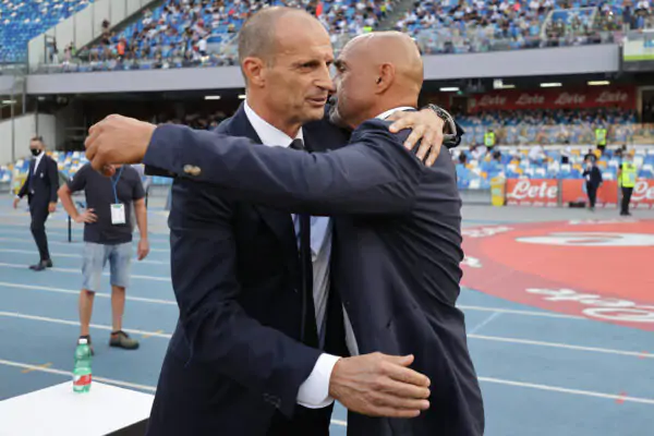 Massimiliano Allegri coach of Juventus FC and Luciano Spalletti coach of SSC Napoli greet each other during the Serie A 2021/2022 football match between SSC Napoli and Juventus FC at Diego Armando Maradona stadium in Napoli Italy, September 11th, 2021. Photo Cesare Purini / Insidefoto CesarexPurini