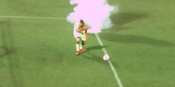 Durante il match in corso di Serie B Crotone-Benevento, il portiere in prestito dal Napoli Nikita Contini è stato circondato dalla scia di un fumogeno lanciato in campo. Per fortuna il giocatore sta bene.