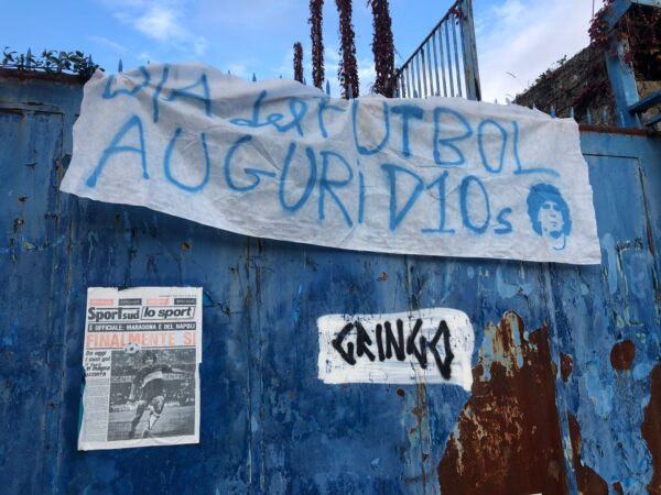 Per questo è stato organizzato un raduno all’esterno del centro Paradiso, per commemorare insieme il Dio del futbòl. Il centro Paradiso, situato a Soccavo, è un posto molto importante per i fan di Diego. Lì, infatti, il Napoli svolgeva i suoi allenamenti durante gli anni ’80 e ’90. Ora il centro è chiuso.