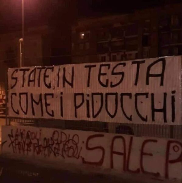 “State in testa come i pidocchi“, questo il testo che si legge sullo striscione facendo riferimento alla posizione in classifica della squadra di mister Spalletti.