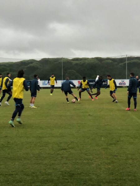 I calciatori si sono allenati in palestra, per poi spostarsi sul campo e terminare l’allenamento.