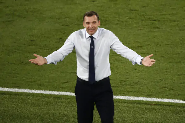 ROME, ITALY - JULY 03: Andriy Shevchenko, Head Coach of Ukraine reacts during the UEFA Euro 2020 Championship Quarter-final match between Ukraine and England at Olimpico Stadium on July 03, 2021 in Rome, Italy. (Photo by Alessandro Garafallo - Pool/Getty Images)