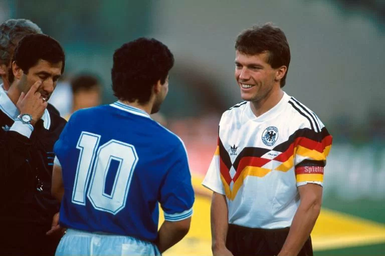 “Rivalità con Maradona? Era sempre un onore giocare contro di lui, indipendentemente se fosse un amichevole o la finale di un Mondiale. Le gare erano sempre dure e sentite, ma al termine della partita parlavamo cordialmente. Abbiamo vissuto bei momenti insieme, nonostante fossimo rivali. Lui è venuto alla mia partita d’addio a Monaco, io andai alla sua a Buenos Aires, c’era una bella amicizia sportiva“.
