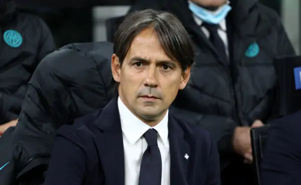 MILAN, ITALY - OCTOBER 24: Simone Inzaghi, Head Coach of FC Internazionale looks on prior to the Serie A match between FC Internazionale and Juventus at Stadio Giuseppe Meazza on October 24, 2021 in Milan, Italy. (Photo by Marco Luzzani/Getty Images)