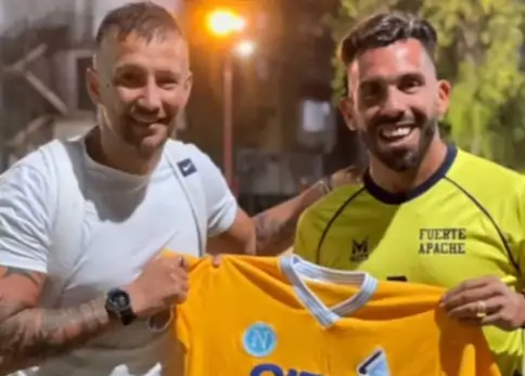 Dall’Argentina arrivano degli scatti molto particolari: Carlitos Tevez, in una partitella tra amici a Fuerte Apache, ha indossato la maglia che fu di Diego Armando Maradona ai tempi del Napoli.