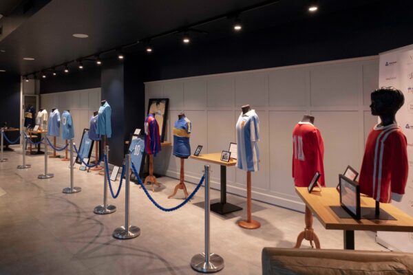 Ieri (25 novembre, il giorno del triste anniversario della scomparsa del “Diez”)e oggi, 26 novembre, gli ultimi due giorni della mostra, composto da cimeli unici ed emozionanti del “Cammarota Antonio Museum” che ha allestito un vero e proprio percorso storico, ripercorrendo un quarto di secolo di storia del calcio, scandendo le tappe più importanti della carriera di Diego Armando Maradona con l’esposizione di maglie indossate una sola volta dal campione argentino: partendo, appunto dal 1973, con la prima “camiseta” appartenuta a Diego quando muoveva i primi passi nelle Cebollitas, si arriverà all’ultima maglia indossata con il Boca Junior nel 1997, passando per le maglie dell’Argentinos Juniors (1977), della Nazionale Argentina (Mondiale U20 del 1979, Mondiale Mexico ’86 quello del “Gol del Secolo” e Italia ’90), Boca Junior (1981), Barcellona (1982 – 1984) e tante maglie indossate dal “Diez” nel corso di importanti partite giocate con la maglia del Napoli.