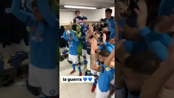 Lo spettacolo degli azzurrini negli spogliatoi dopo la grande vittoria contro il Lecce.