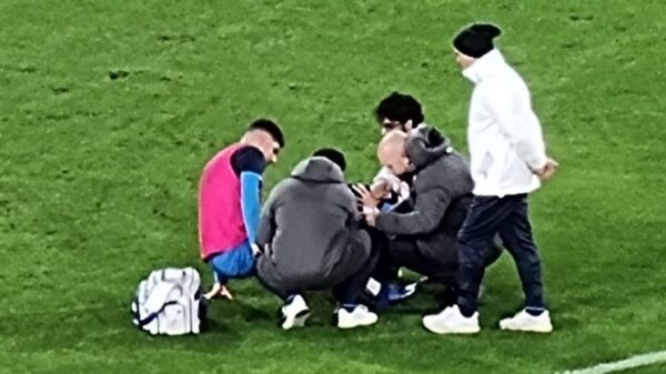 Nel corso del riscaldamento, infatti, il terzino destro Giovanni Di Lorenzo, annunciato come titolare nelle formazioni ufficiali, ha riscontrato un problema ed è stato soccorso dai medici. Il giocatore ha però ha continuato a correre e dovrebbe partire comunque dal primo minuto.