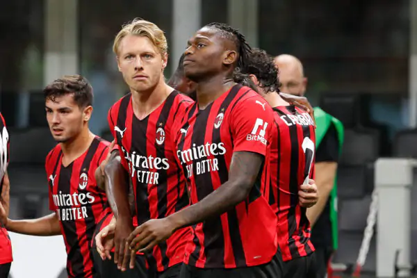 Serie A Championship 2021-22, Milan-Cagliari 4-1, SIMON KJAER, RAFAEL LEAO CAMPIONATO SERIE A 2021-22 MILAN-CAGLIARI 4-1