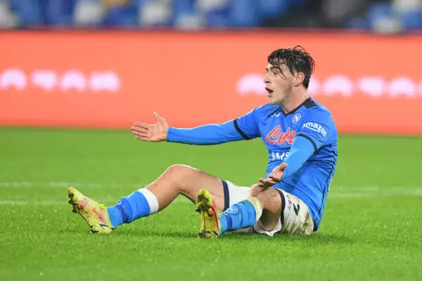 NAPLES, ITALY - DECEMBER 04: Eljif Elmas of SSC Napoli reacts during the Serie A match between SSC Napoli v Atalanta BC at Stadio Diego Armando Maradona on December 04, 2021 in Naples, Italy. (Photo by Francesco Pecoraro/Getty Images)